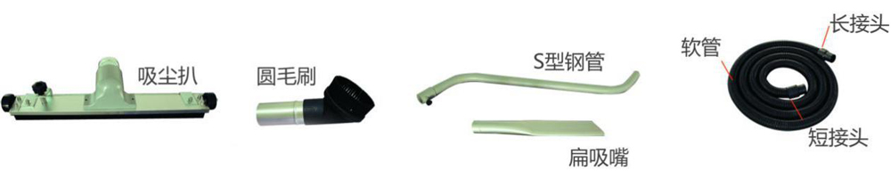 宇顺力YS-3000工业吸尘器配备吸尘扒、圆毛刷、扁吸嘴、S型钢管、软管、长接头、短接头